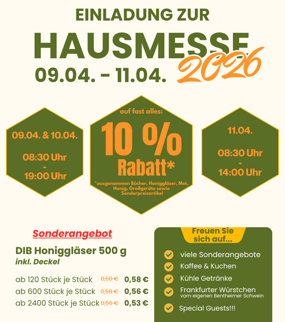 Seit vielen Jahrzehnten bereits beliefern wir unsere Kunden mit hochwertigen Produkten des Imkereibedarfs, von der Beute bis zur Honigschleuder, zu günstigsten Preisen. Auch über unseren online Imkershop.